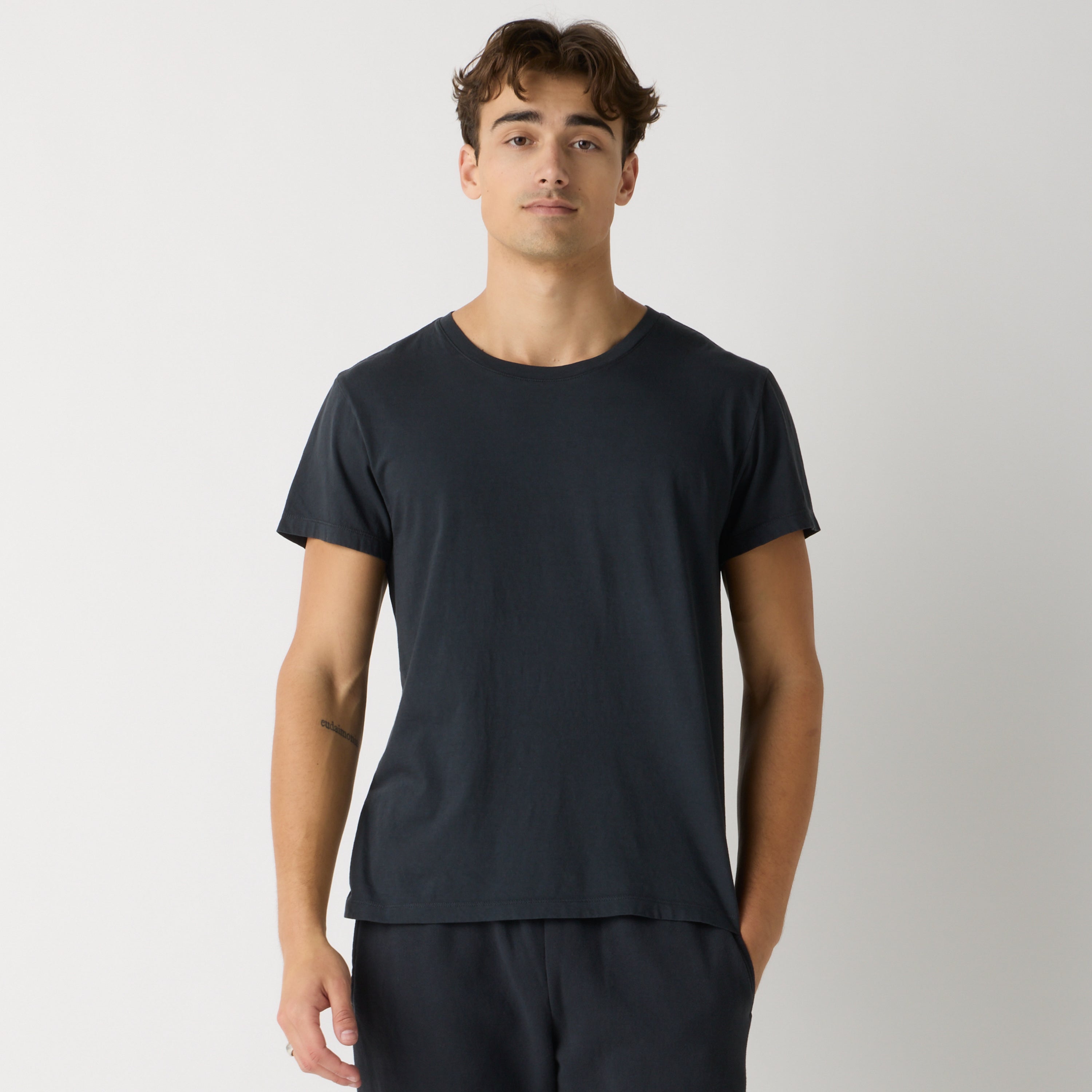 Knit, cut, sewn, and dyed in Los Angeles, the Rocker Tee harkens back to the vintage rock tees of the eighties and nineties.This style was garment dyed, an artisanal process that will naturally experience shade variation from garment to garment. The unique differences add to the character of the piece. Click here to learn more about this process.